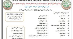 تنظم غرفة تجارة الزرقاء وبالتعاون مع فريق نبض أثر التطوعي يوم وظيفي في مبنى الغرفة وذلك يوم الاثنين الساعة 10 صباحاً الموافق 17/11/2025 .ويشمل اليوم الوظيفي تعيين 200 شاغر وظيفي ذكور فقط ، علما ان الرواتب من 300-700 دينار .