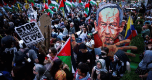 تظاهر آلاف المحتجين ضد حرب إسرائيل في غزة في شوارع مدينة نيويورك يوم الجمعة، تزامناً مع زيارة رئيس الوزراء الإسرائيلي بنيامين نتنياهو لإلقاء خطاب أمام الجمعية العامة للأمم المتحدة. وأظهرت مقاطع مصوّرة المحتجين وهم يلوّحون بالأعلام الفلسطينية، ويرتدون الكوفية، ويحملون لافتات كتب عليها: “الحرية لفلسطين”، “أوقفوا تجويع غزة”، و”نطالب بحظر السلاح الآن”. تجمع المتظاهرون في ساحة “تايمز سكوير”، بعيداً عن مبنى الأمم المتحدة، …
